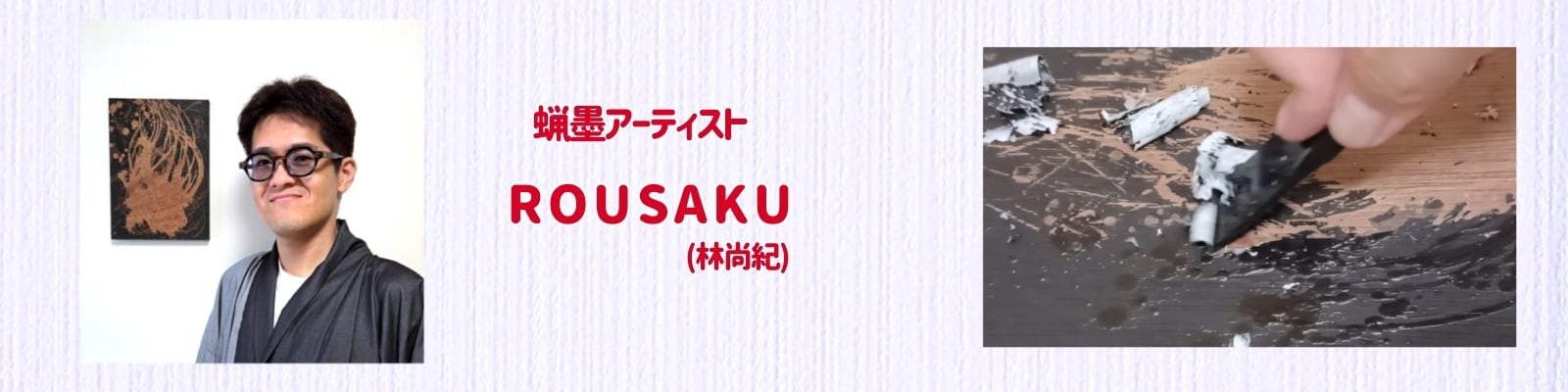 蝋で描き、墨を重ね、蝋を削り落とすことで姿が浮かび上がる独自の技法「蝋削画」。